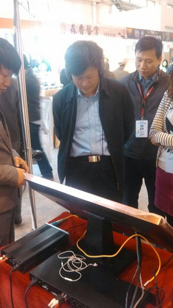 更为荣幸的是,新闻出版局的王局长前来雷客展位参观体验,并向现场的雷客工作人员咨询了解点歌机的情况,在工作人员的一番详细讲解和演示后进行了亲身体验,王局长对雷客点歌机的新功能以及高清画质啧啧称赞。